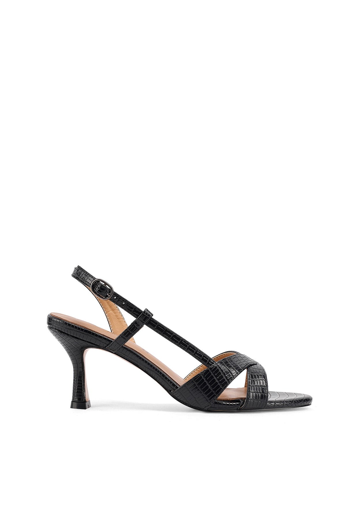 La struttura aperta e il tacco medio slanciato rendono questo modello adatto a eventi, cerimonie e serate estive, offrendo una calzata stabile senza rinunciare alla raffinatezza.