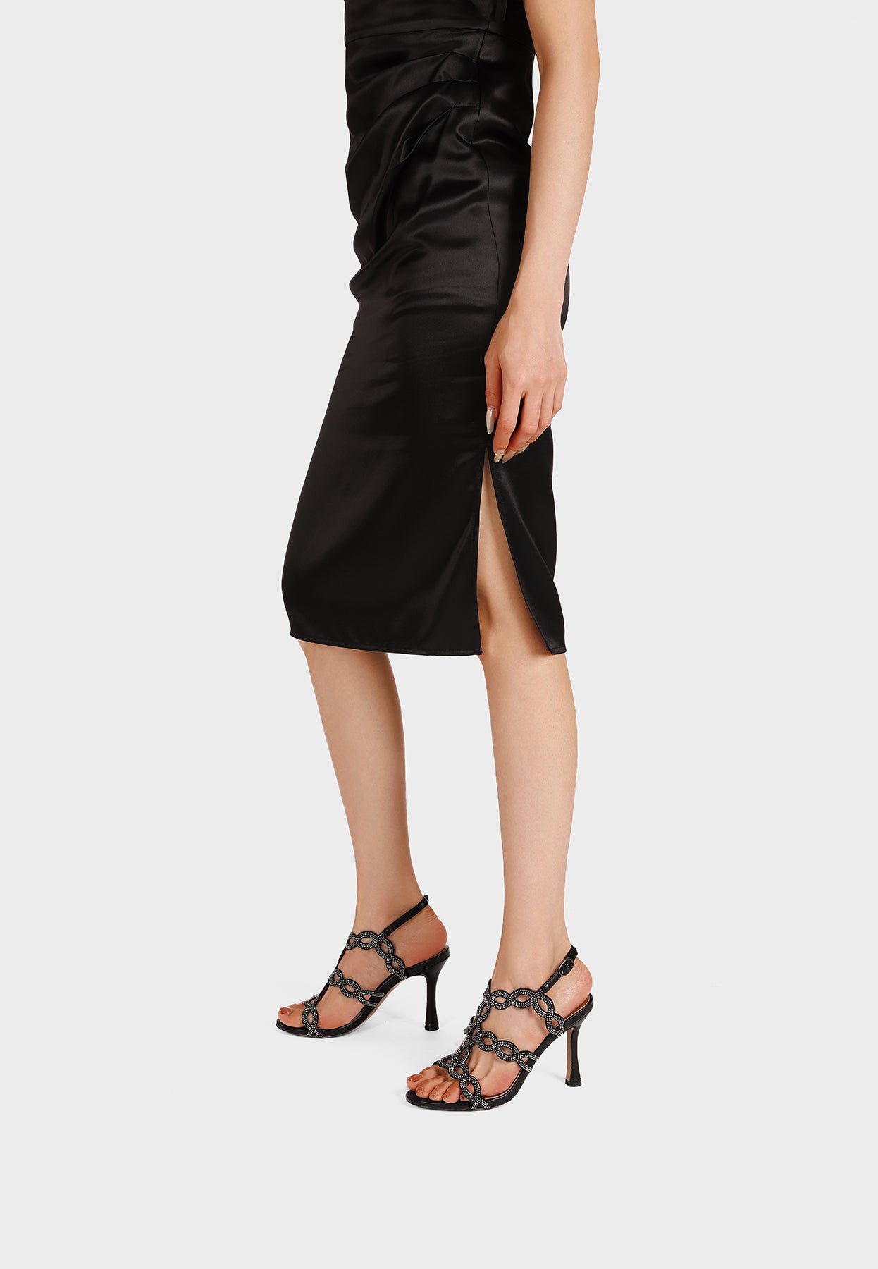 Il tacco slanciato dona femminilità alla silhouette della scarpa, mentre il cinturino regolabile alla caviglia assicura una calzata stabile e confortevole. Questo modello è ideale per completare look eleganti, outfit da cerimonia o abbinamenti ricercati per occasioni speciali.