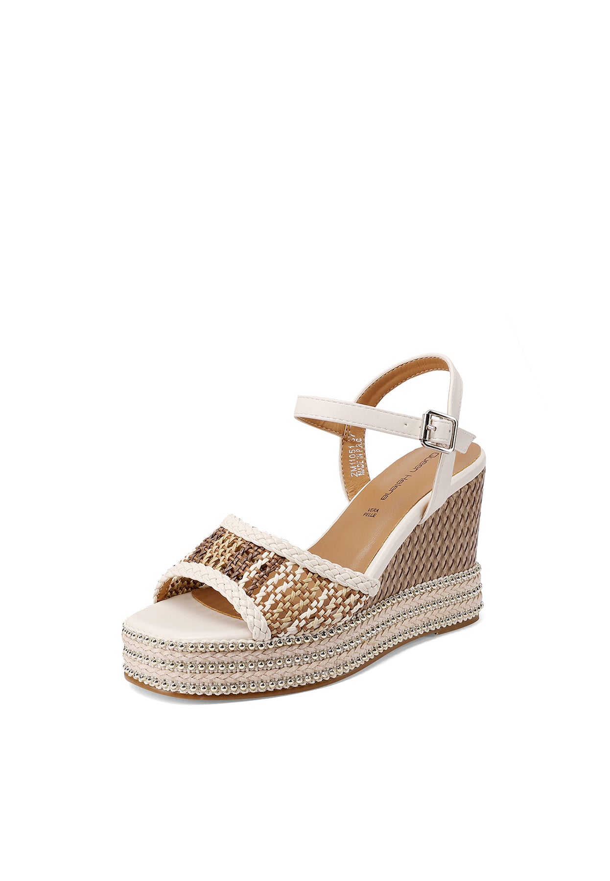 I sandali Queen Helena ZM11051 uniscono carattere e stile grazie alla zeppa intrecciata e alla platform strutturata, che slanciano la figura offrendo stabilità. Il cinturino regolabile alla caviglia assicura una calzata confortevole, mentre il design curato rende il modello ideale per completare look estivi ricercati e di tendenza.