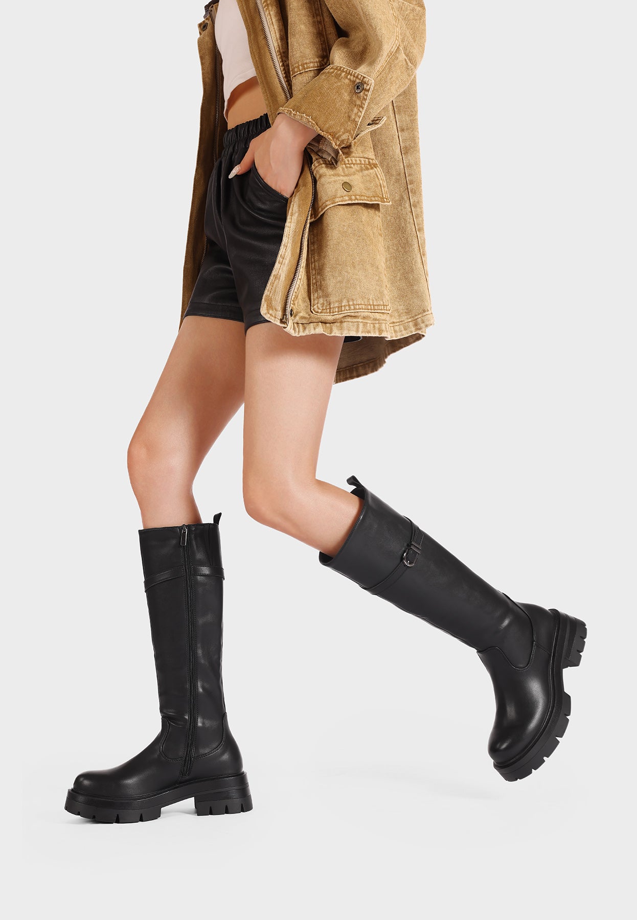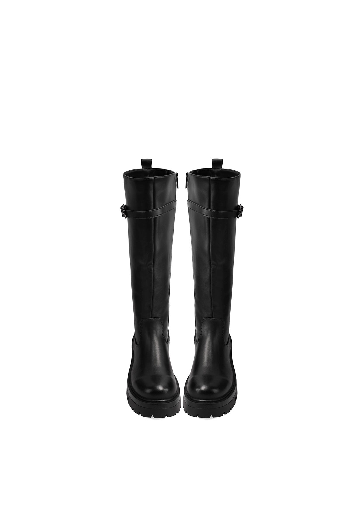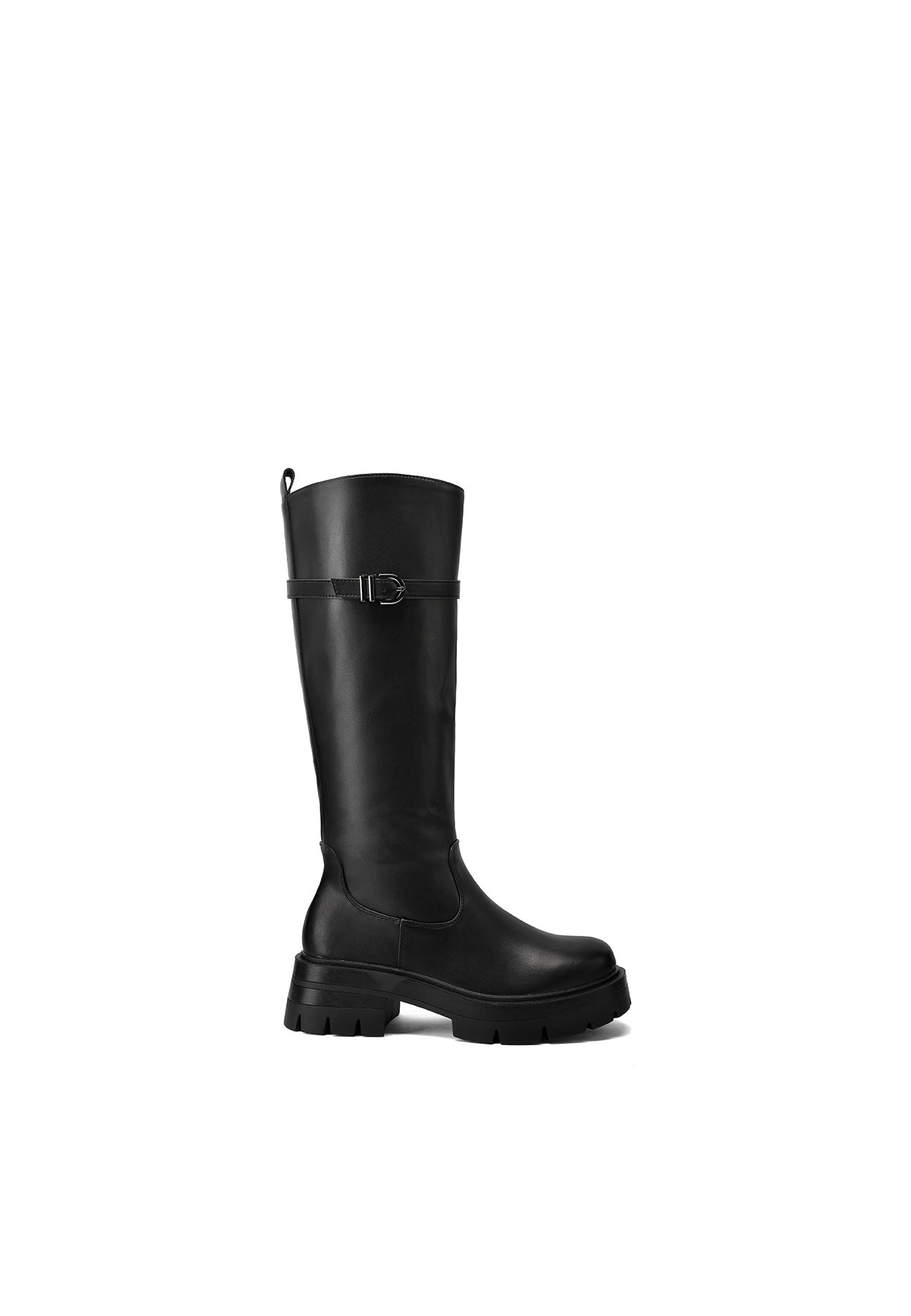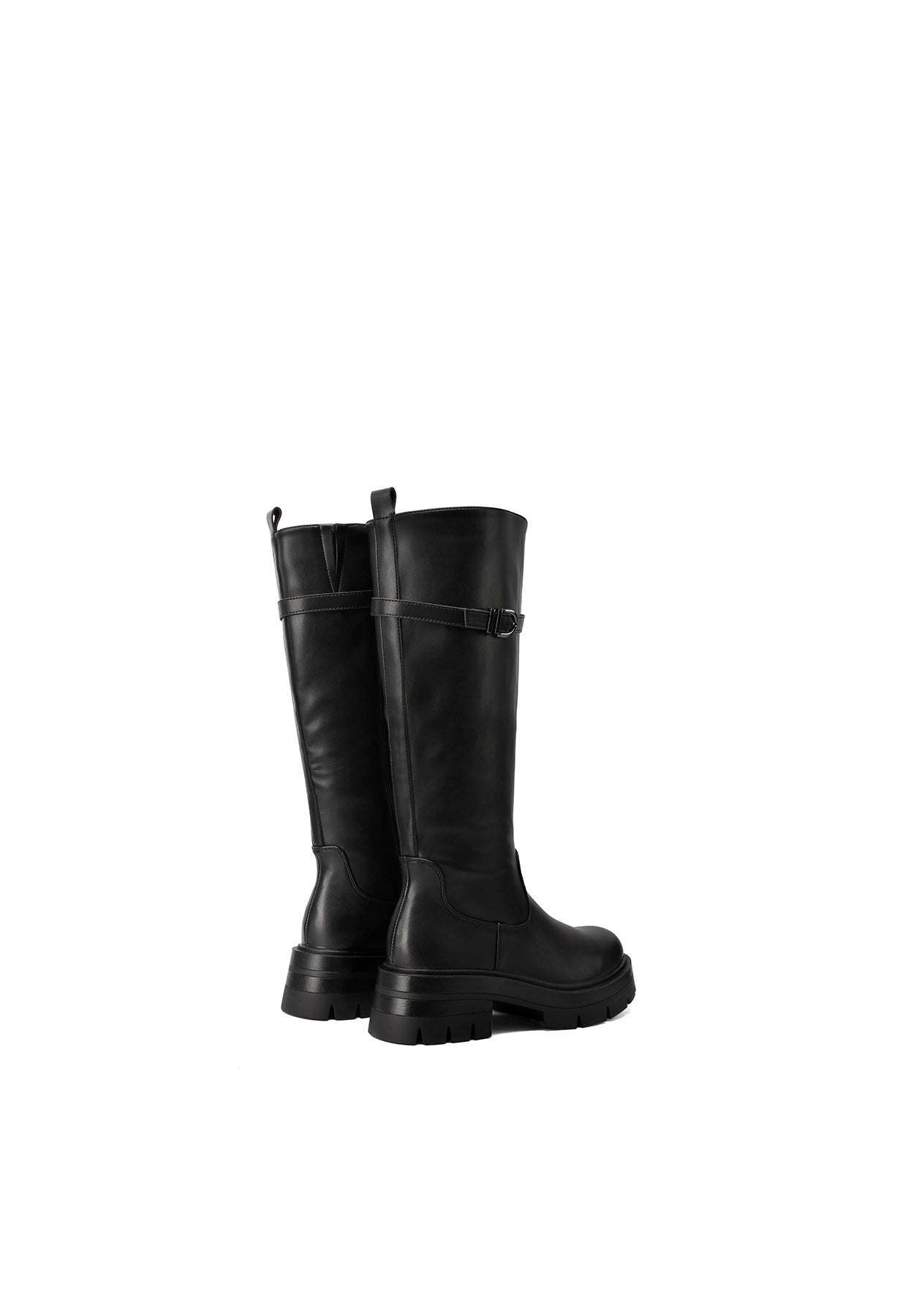 These women's faux leather high boots with buckle are the perfect choice for those seeking an elegant yet bold style. The buckle on the shaft adds character, while the lug sole ensures comfort and stability for any occasion. Ideal for urban and casual chic looks.