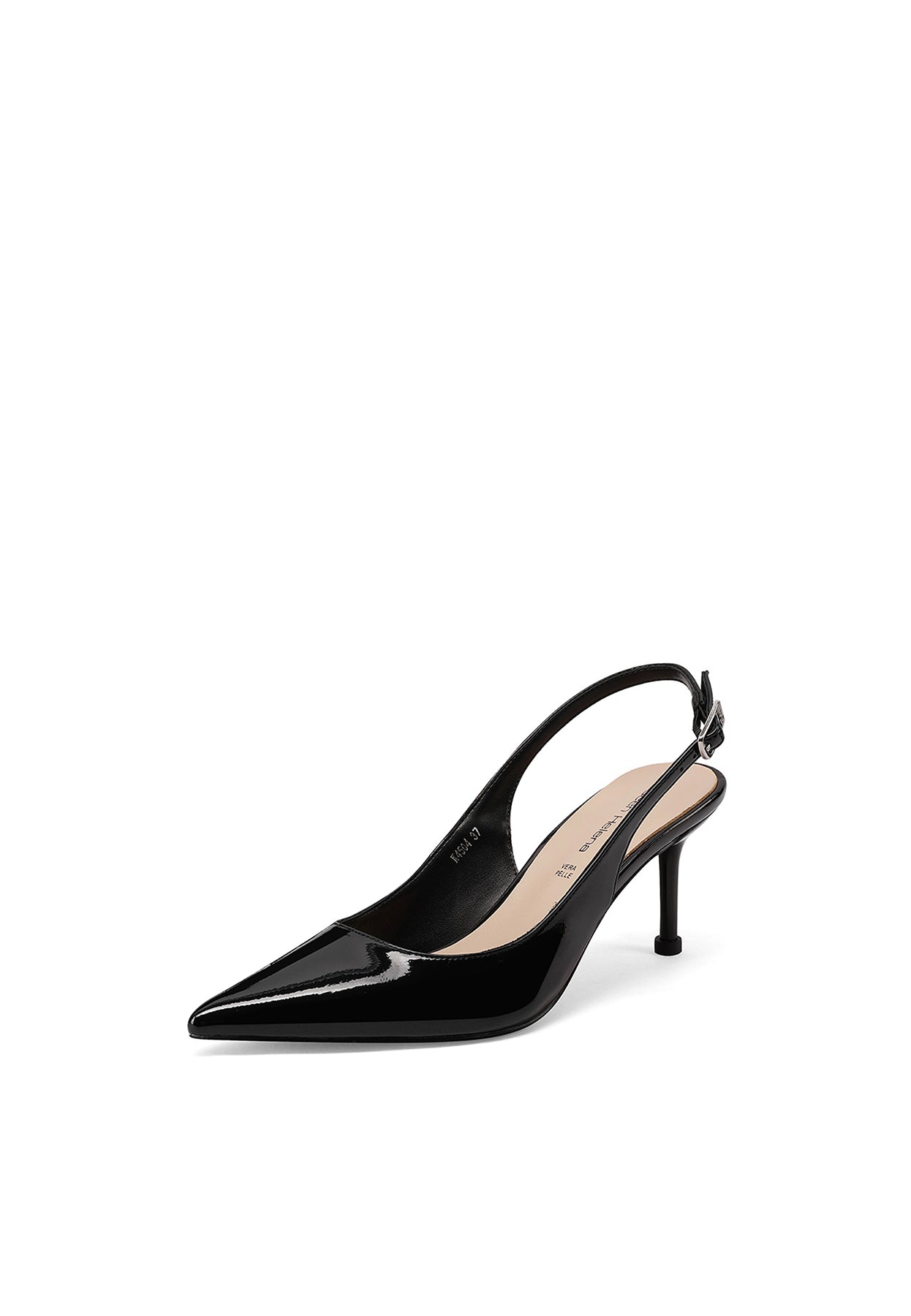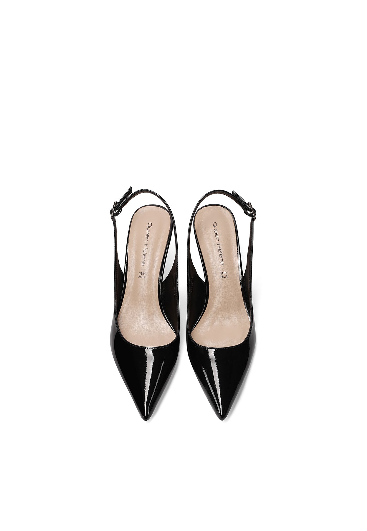 Essenziale, lucida e incredibilmente versatile: la décolleté slingback in vernice Queen Helena modello K4504 è il classico che aggiorna ogni look. La punta affusolata dona un effetto elegante e slancia il piede, mentre il tacco medio è ideale per accompagnarti tutto il giorno con un equilibrio perfetto tra stile e praticità. Il cinturino slingback completa il design con un tocco femminile e una calzata più stabile.