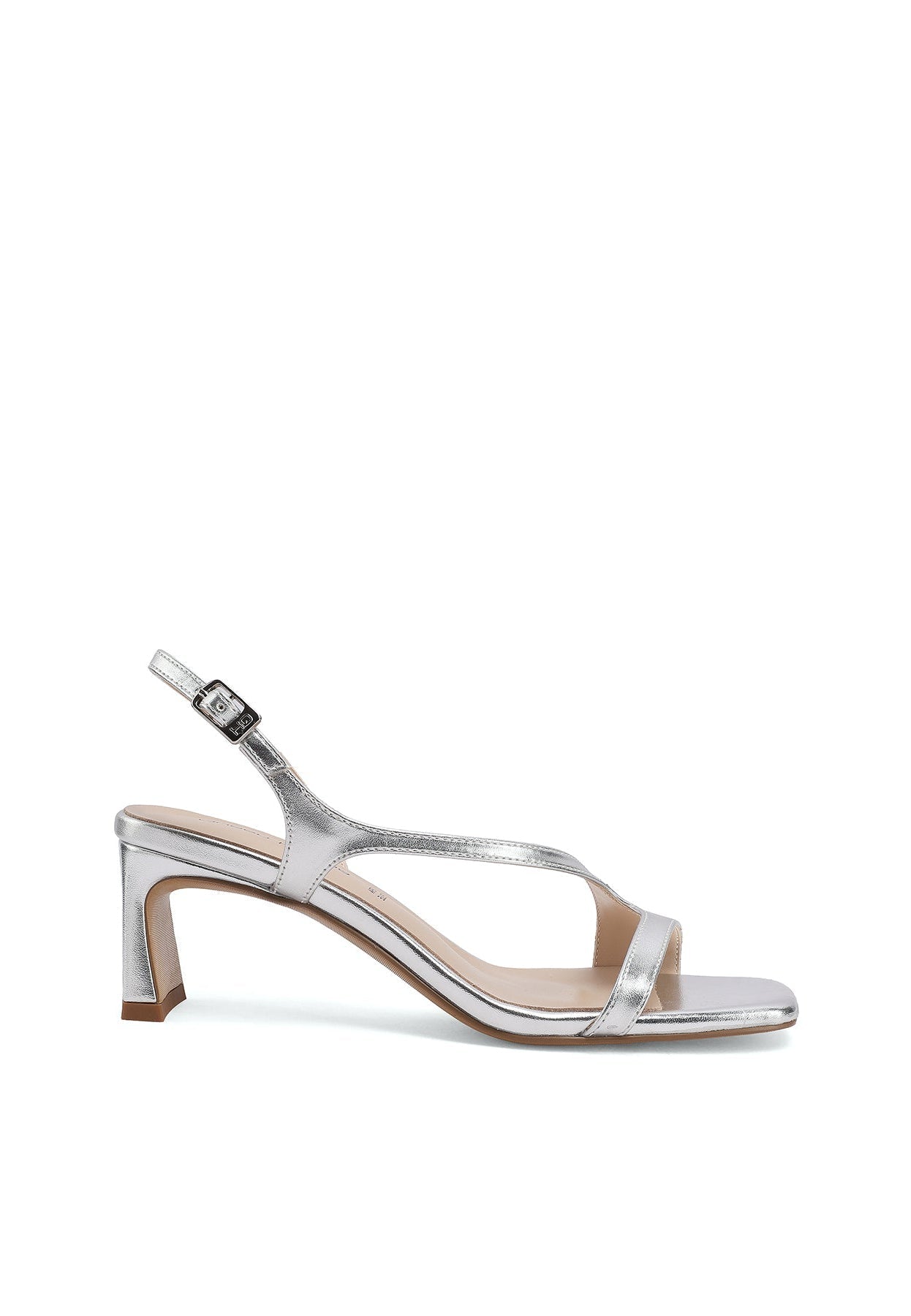 Sandali donna eleganti con listini sottili e tacco squadrato, argento