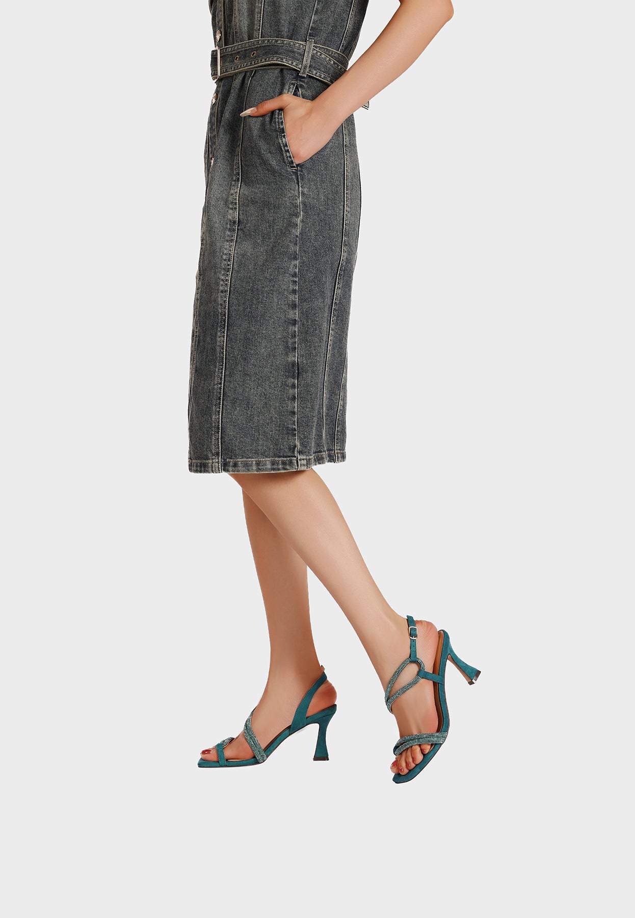 Sandali gioiello con strass e tacco sagomato S3002