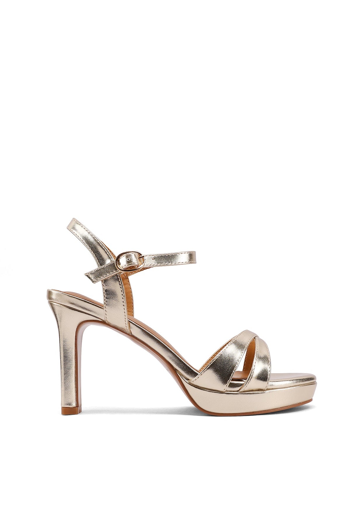 La struttura con platform anteriore bilancia l’altezza del tacco, offrendo maggiore comfort durante la camminata, mentre il cinturino regolabile assicura stabilità e vestibilità precisa.