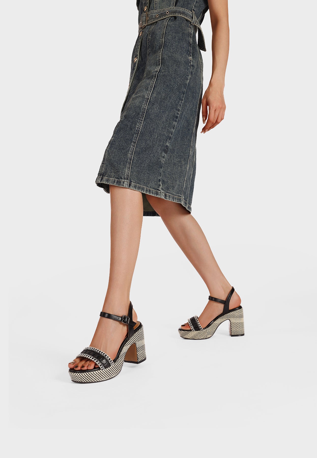 Sandali con platform e tacco largo rivestito ZM11050