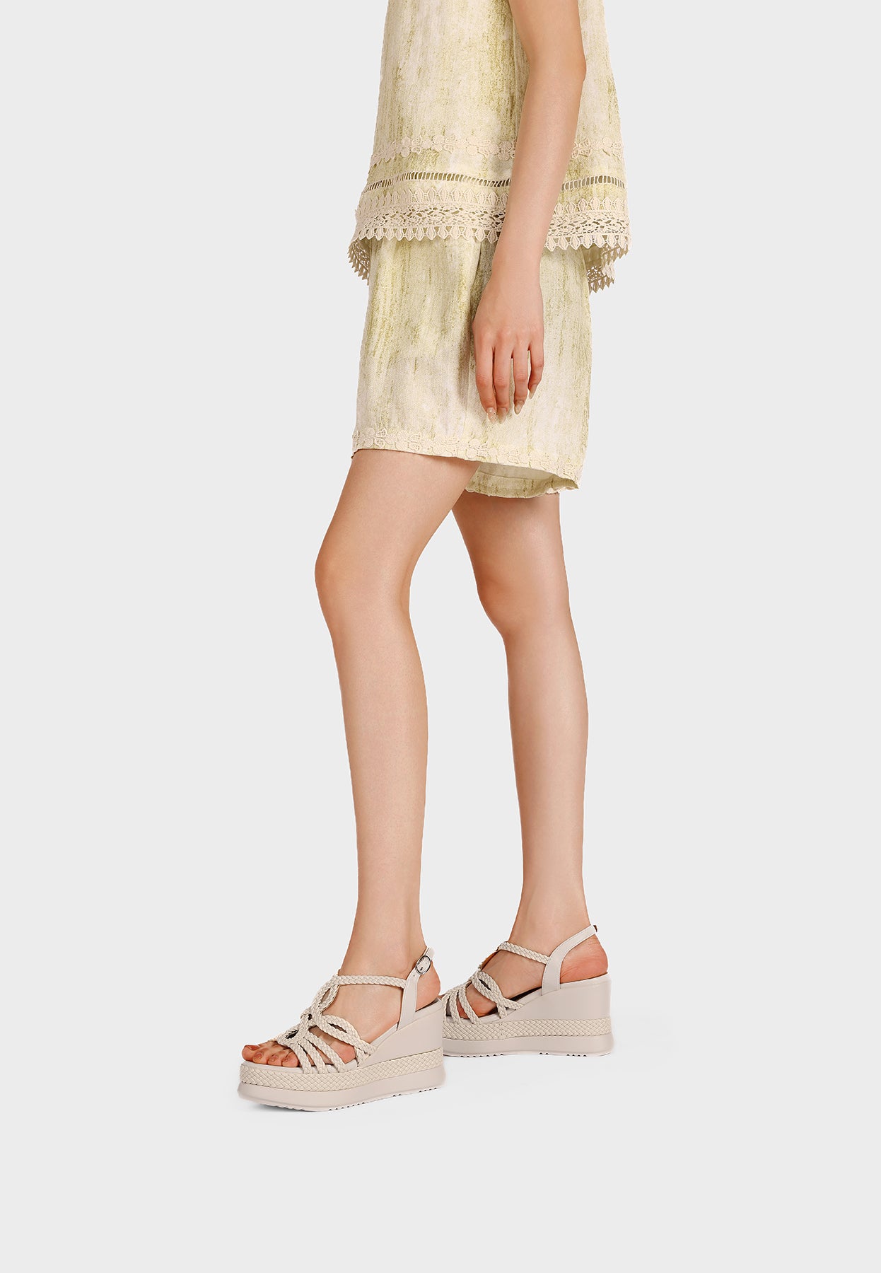 Le fasce multiple creano un raffinato effetto texture, mentre la zeppa ergonomica slancia la figura garantendo stabilità durante tutta la giornata. Il design è pensato per accompagnare con naturalezza look estivi, casual e tempo libero.