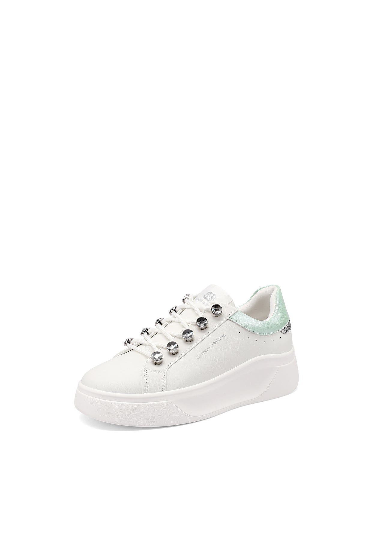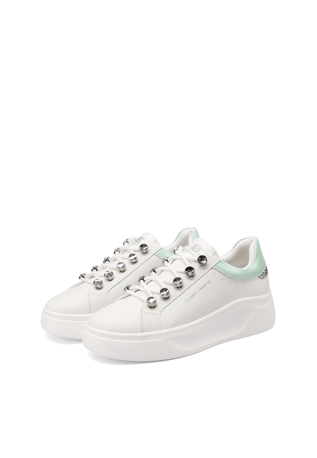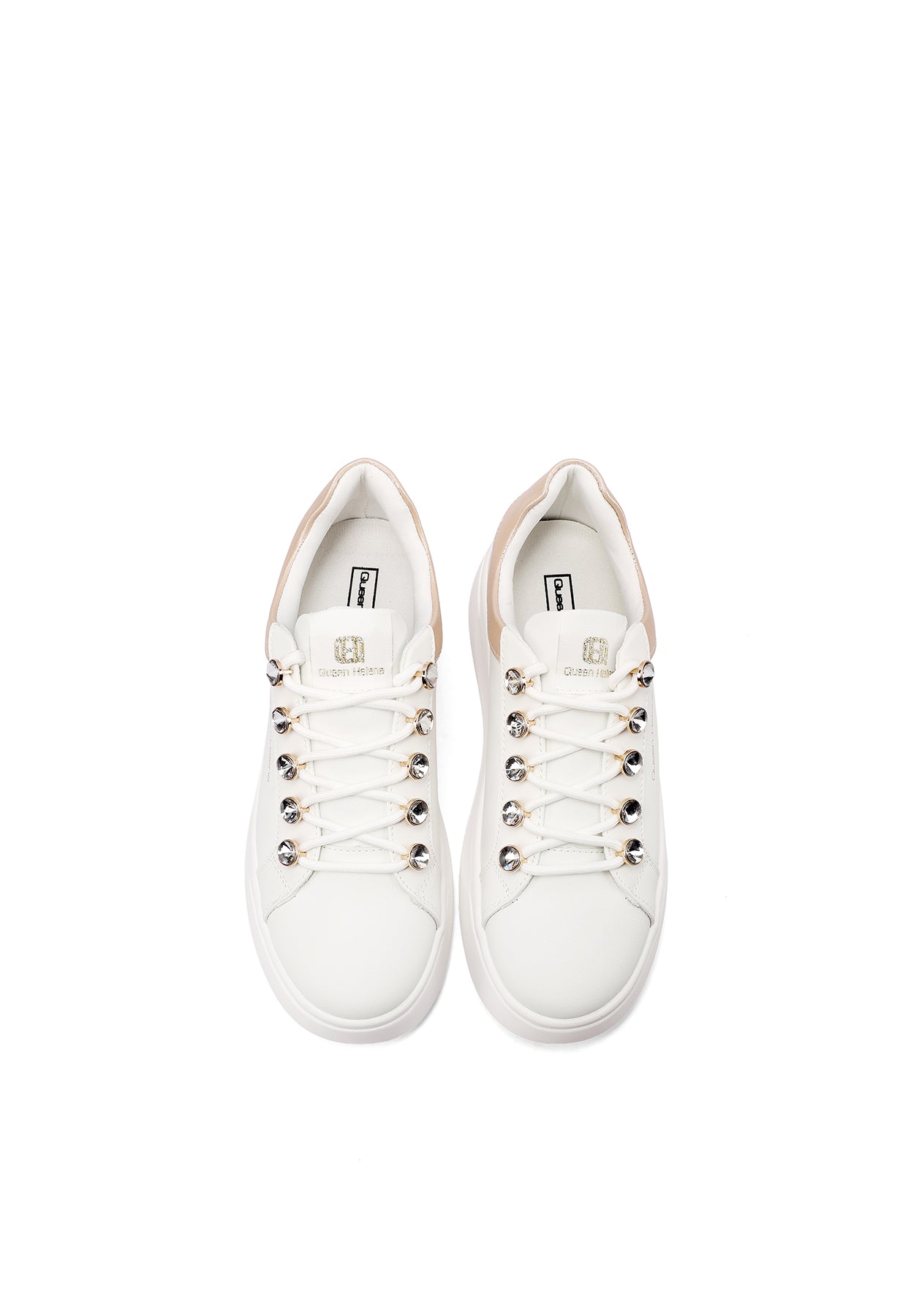Le sneakers Queen Helena modello X34-11 uniscono stile urbano e dettagli ricercati in una proposta versatile e di tendenza. La suola platform assicura comfort e slancio alla silhouette, mentre i lacci con dettagli gioiello aggiungono un tocco distintivo e femminile al design essenziale. Perfette per accompagnare i look quotidiani con personalità e praticità.