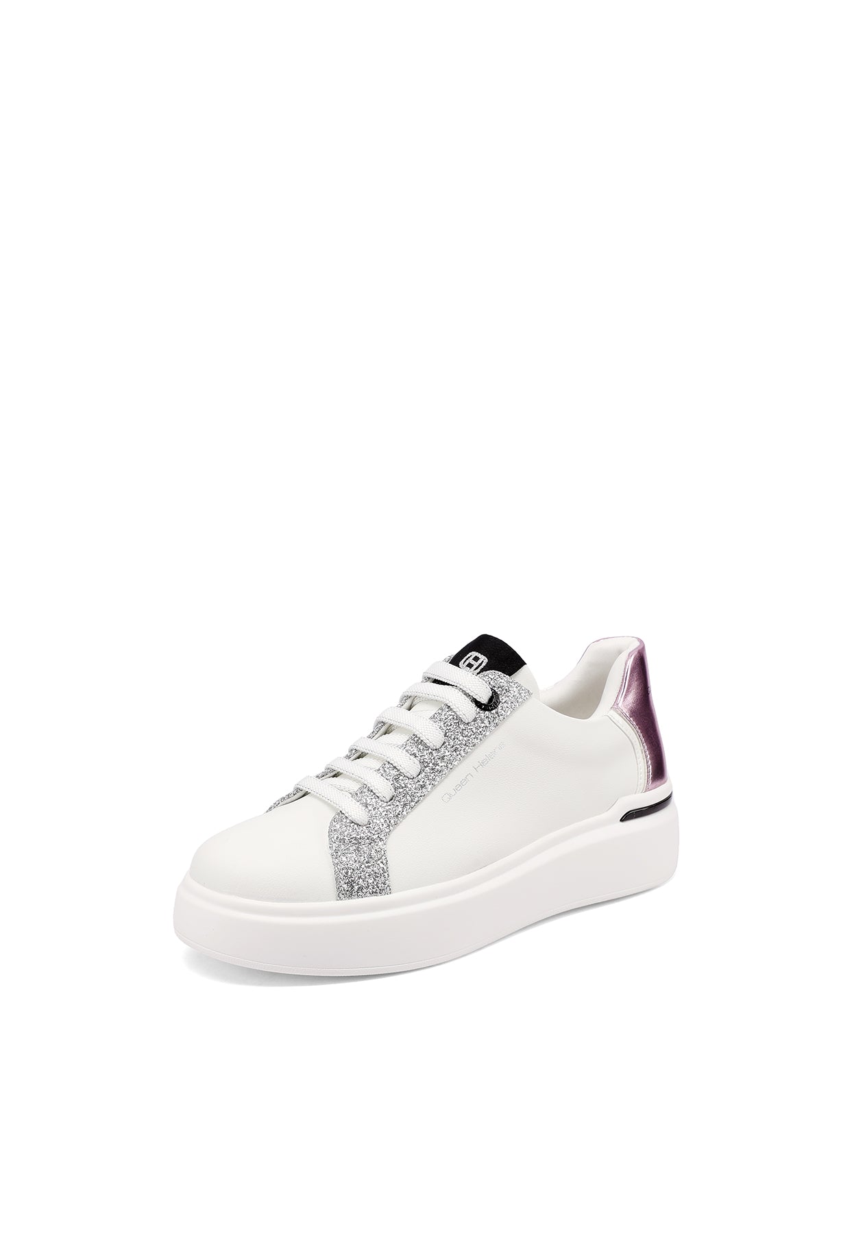 Le sneakers platform Queen Helena modello X34-12 sono pensate per chi ama i dettagli che catturano lo sguardo senza rinunciare alla praticità. La suola platform dona slancio e un’allure contemporanea, mentre gli inserti glitter creano un effetto sparkling super fashion. I dettagli metallici completano il design con una nota luminosa e raffinata, ideale per rendere più interessante anche l’outfit più basic.
