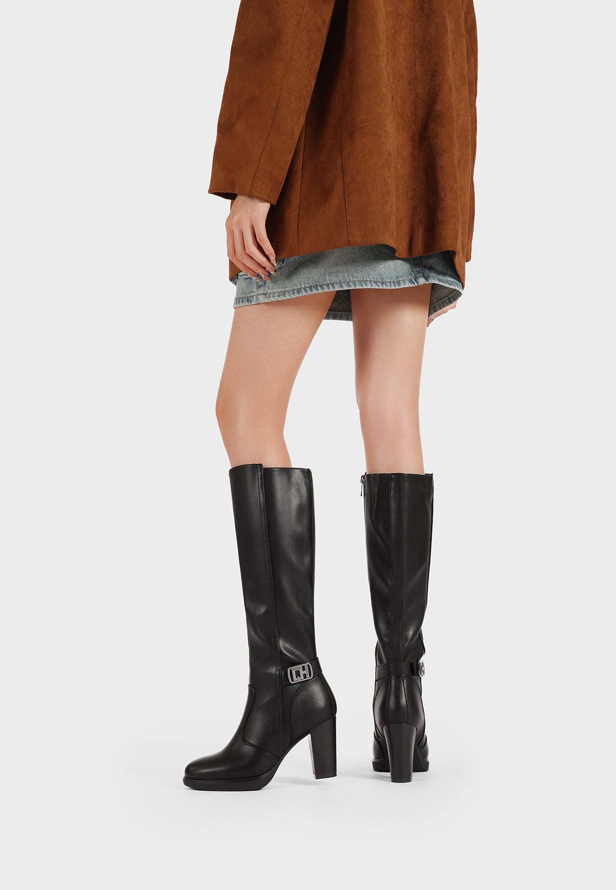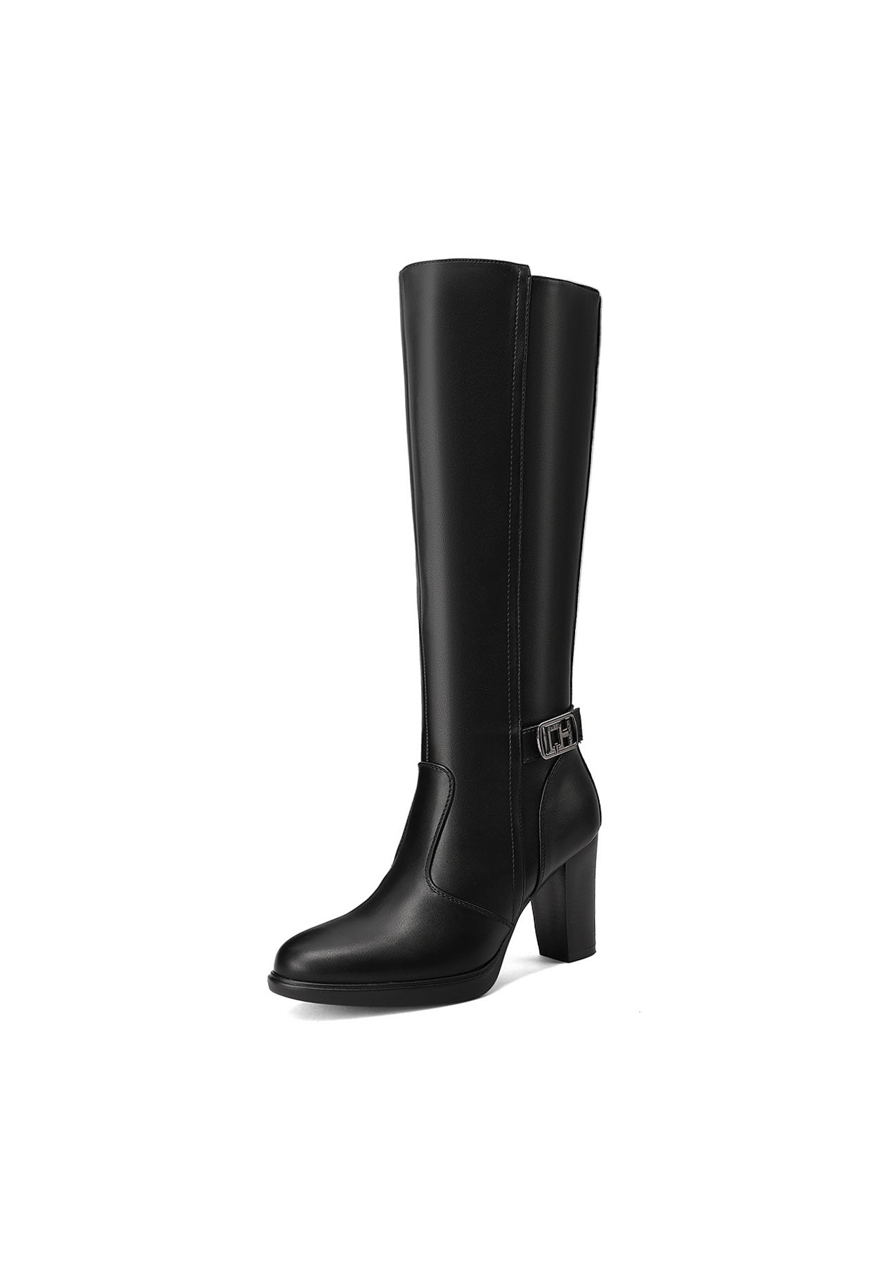 Stivali donna alti tacco largo a punta con fibbia X33-106