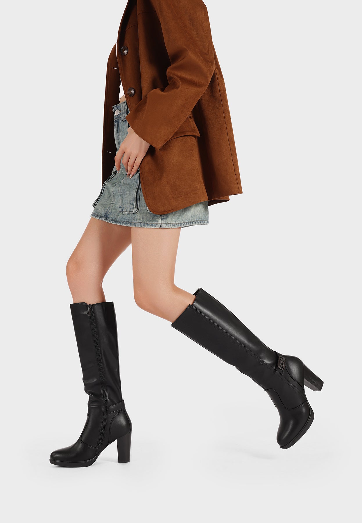 Rinnova il tuo stile con i nuovi stivali donna alti eleganti, caratterizzati da un tacco largo alto che dona slancio e stabilità. La punta affusolata esalta la silhouette, mentre la fibbia decorativa laterale aggiunge un dettaglio distintivo. Perfetti per completare look chic e femminili, ideali per il giorno e la sera.